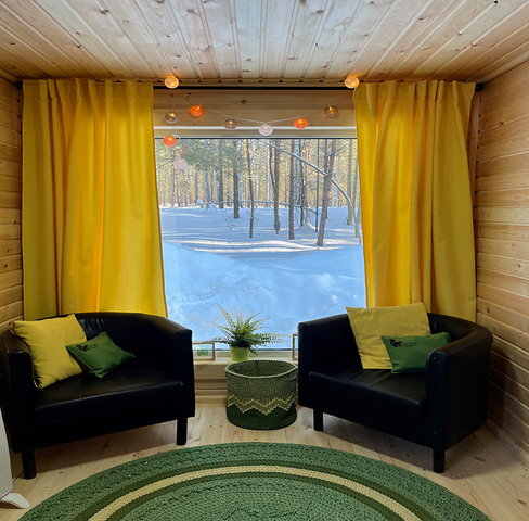 Внутри светло, уютно, для 2-3 человек - идеально, места всем хватает. Муж поставил дополнительные лампочки в каждом помещении, поэтому света предостаточно.