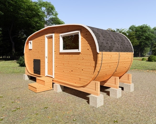 Симбиоз круглой и квадратной бани-бочки. Разработано с учётом эргономики, в ней так же просторно, как и в квадро-бочке, но при этом полукруглая крыша не дает задерживаться снегу и влаге на кровле. А еще такая баня безусловно красивая, мобильная и доступная каждому!