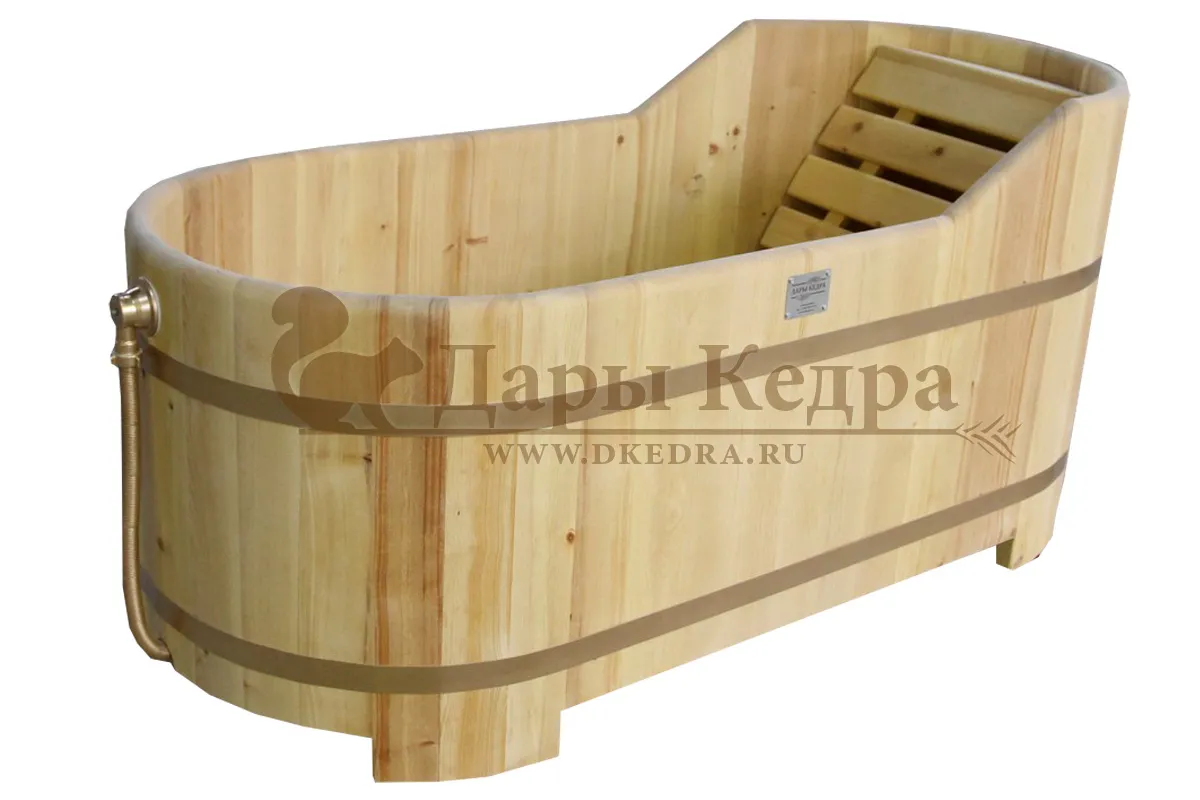 Деревянная ванна из кедра создаст уютную атмосферу в вашей ванной комнате, бане или спа-салоне. При взаимодействии кедра с водой активируются эфирные масла и фитонциды, что делает принятие ванны не только приятным, но и полезным. Перепад высоты и подспинник обеспечивают комфортное положение тела во время водных процедур. При правильном уходе срок службы изделия более 20 лет.