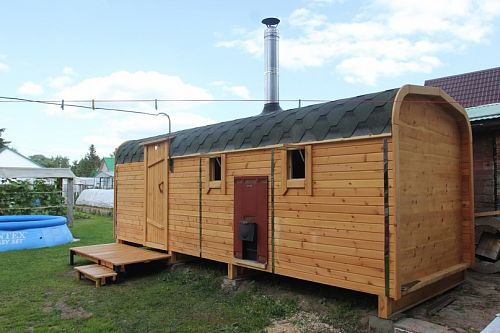 Пользуюсь такой баней 2 месяца, нареканий нет: топится быстро, внутри пространство реализовано очень грамотно. Печь у меня стоит с внешней загрузкой с улицы. Удобно! Заказывали еще ковши к бане и шапочки, тоже пользуемся, нравится)). Рекомендую! Баня классная!